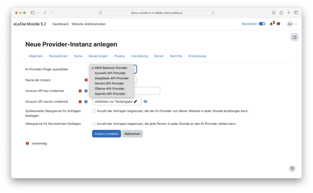 Auf KI-Seite gibt es in 5.2 keine strukturellen Neuerungen – das Subsystem bleibt wie in 5.0 eingeführt und in 5.1 erweitert bestehen (Zugriffskontrollen auf Kurs- und Aktivitätsebene, DeepSeek-Provider). MimeTeX ist aus dem TeX-Filter entfernt.